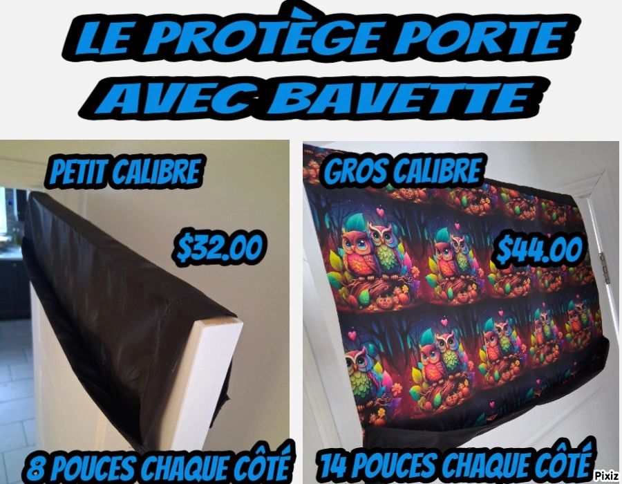 À la suite d'une demande spéciale est né ce protège-porte, deux choix de grandeur, petit = inséparable, perruche, conure, grand = gris d'afrique, amazone, goffin